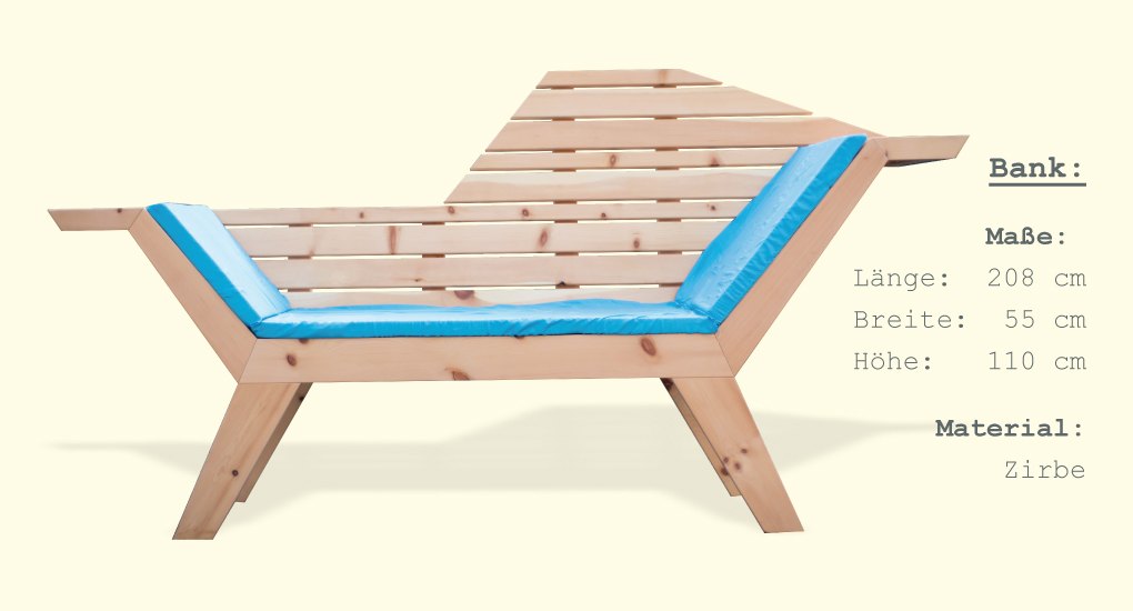 Die Bank bietet durch ihr ergonomisches Design großzügig und ausreichend Platz für mind. zwei Personen. Ob seitlich, schräg oder aufrecht an die Rückenlehne angelehnt, bietet die Bank großen Komfort. Unterstützend dazu wirkt auch noch eine Auflage in der Höhe von 4 cm.