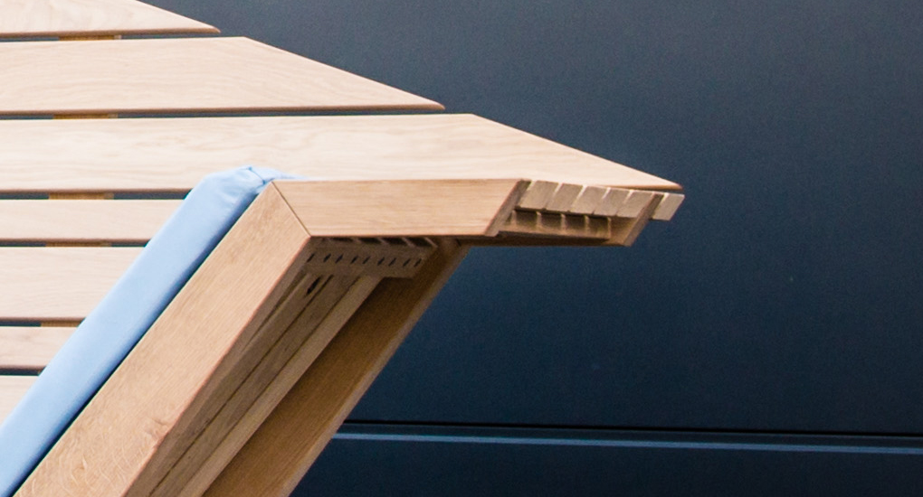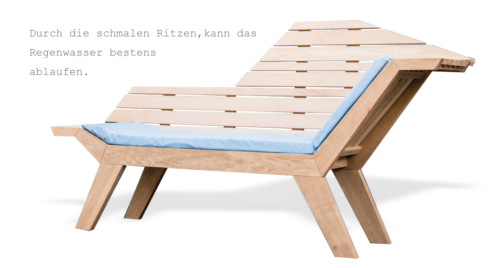 Das Holz verleiht durch seine ganz eigene und unverwechselbare Maserung und Struktur jeder Liege ihre eigene Handschrift. Jede ist ein absolutes Unikat.