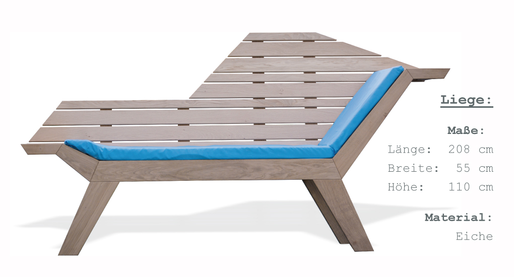 Die Liege kann durch das ergonomische Design bequem zu zweit oder mehreren benutzt werden, da man durch die nach hinten austarierte Rückenlehne angenehm beieinander sitzen kann. Aber der maximale Komfort ist, sie in voller Länge genießen zu können. Nicht nur die Ergonomie der Liege, sondern auch der Duft (Siehe Holz) und die Haptik des gesunden und lebendigen Materials, laden zur Entspannung und zum Abschalten ein.